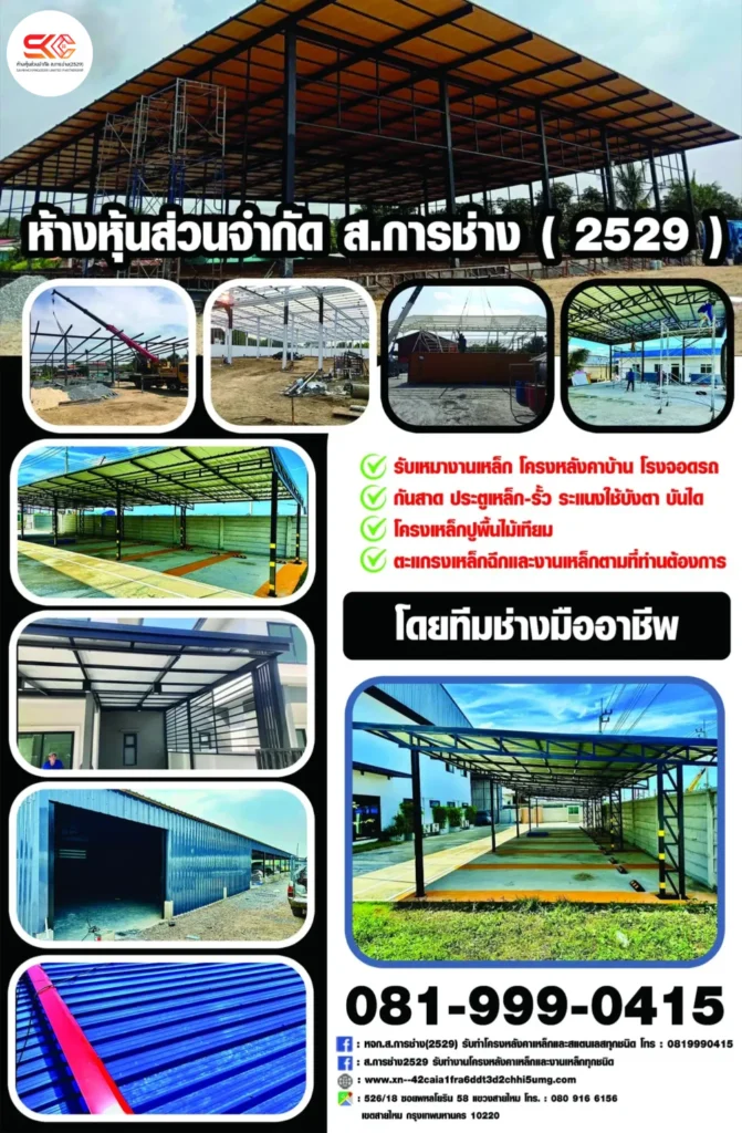 เรามีความเชี่ยวชาญในด้านงานโครงหลังคาและงานเหล็กโดยเฉพาะ ประสบการณ์กว่า 30 ปี